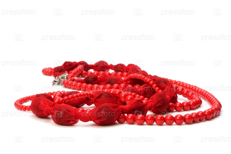 Красные бусы, изолированные на белом фоне