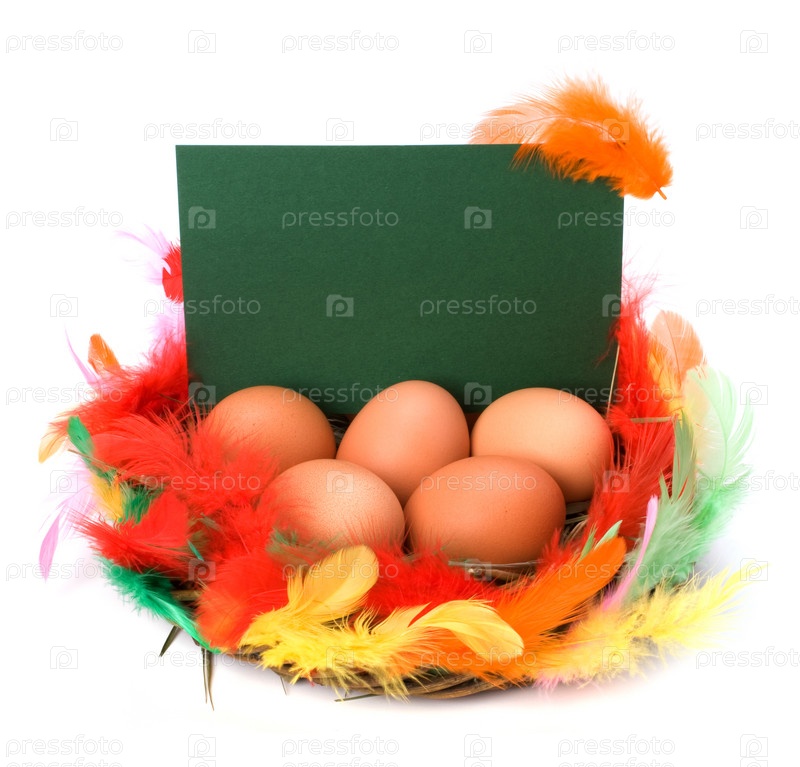 Пасхальный декор с карточкой, изолированные на белом фоне