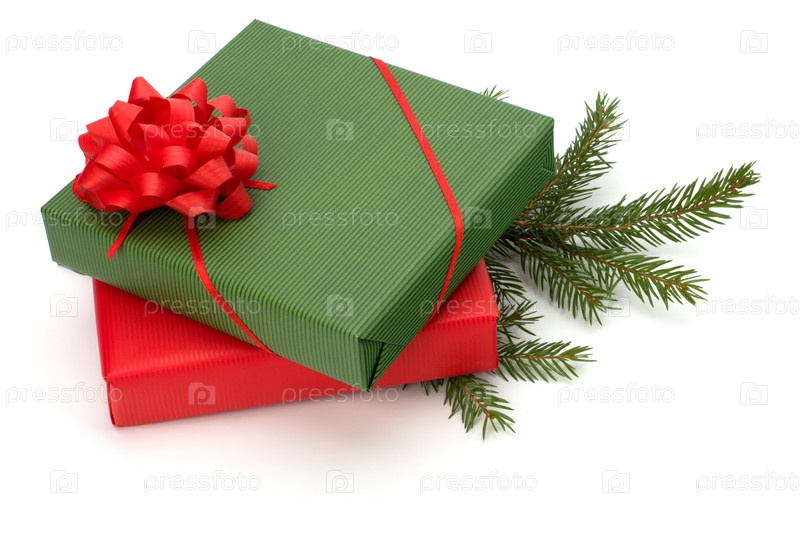 Рождество. Украшенные подарки, изолированные на белом фоне