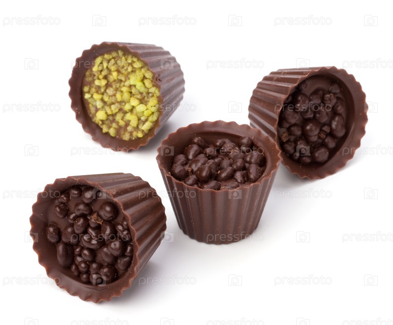 Шоколадные конфеты, изолированные на белом фоне