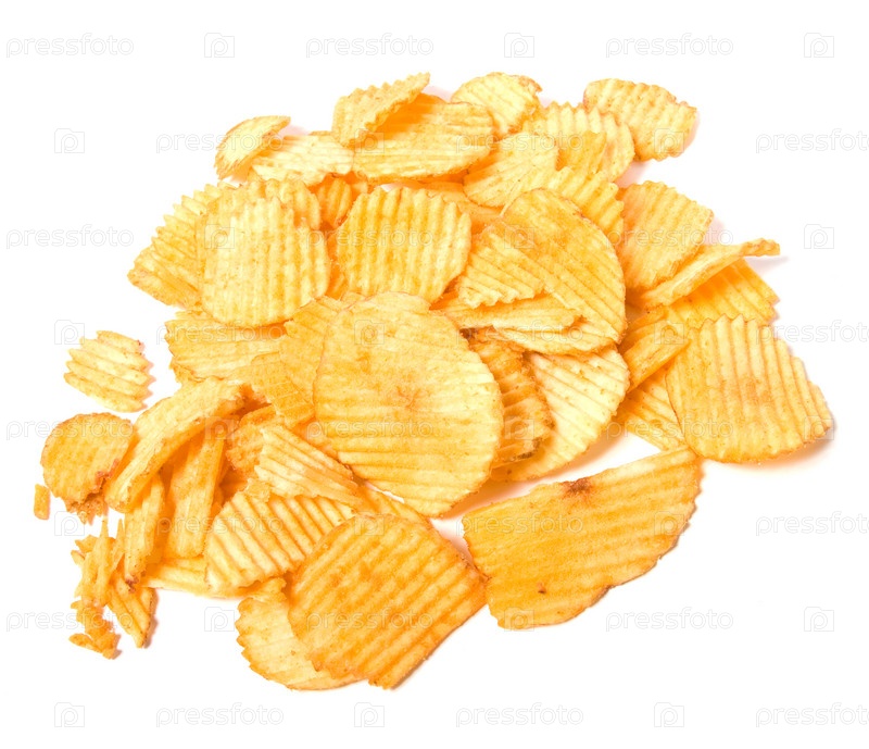 Картофельные чипсы, изолированные на белом фоне
