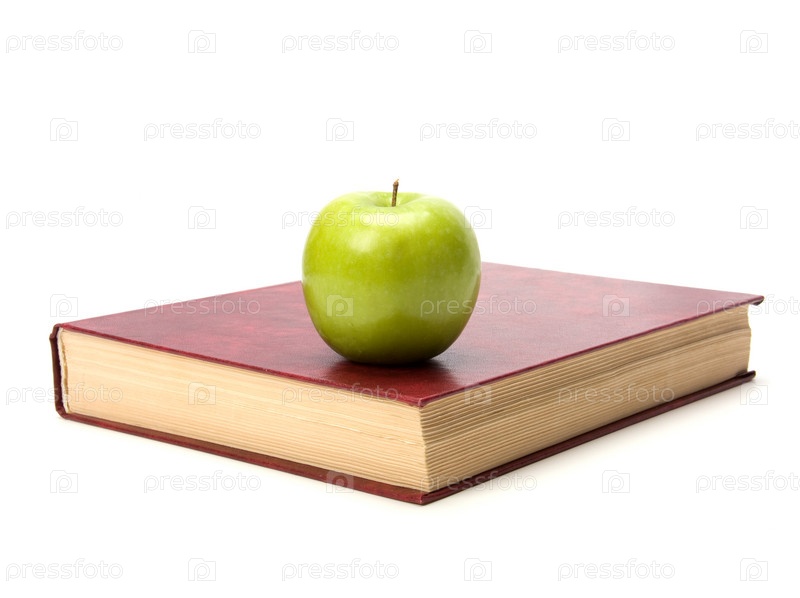 Книга с яблоком, изолированные на белом фоне