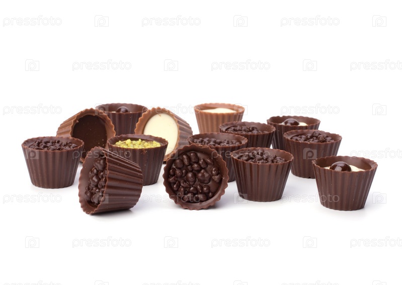 Шоколадные конфеты, изолированные на белом фоне