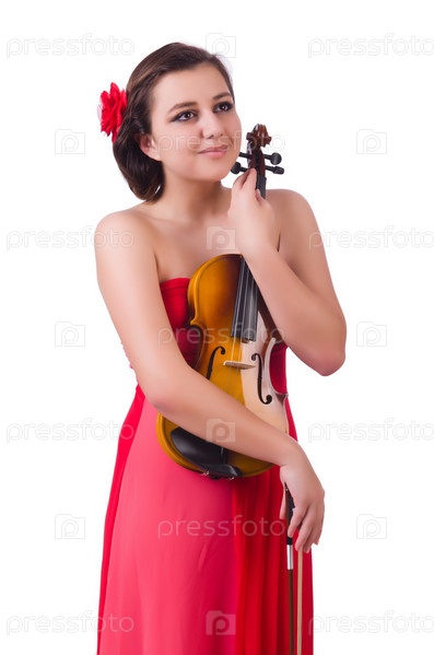 Молодая скрипачка на белом фоне