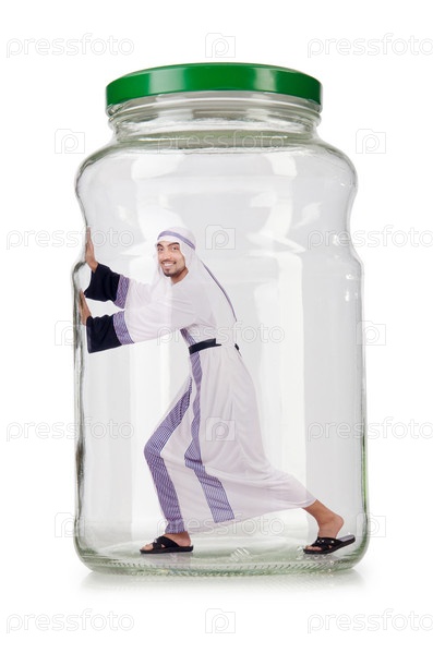 Арабский бизнесмен в стеклянной банке