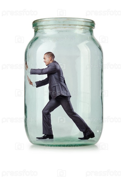 Молодой предприниматель в стеклянной банке