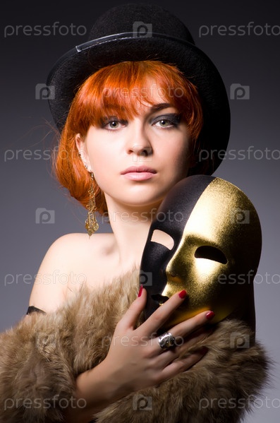 Женщина с маской в концепции лицемерия