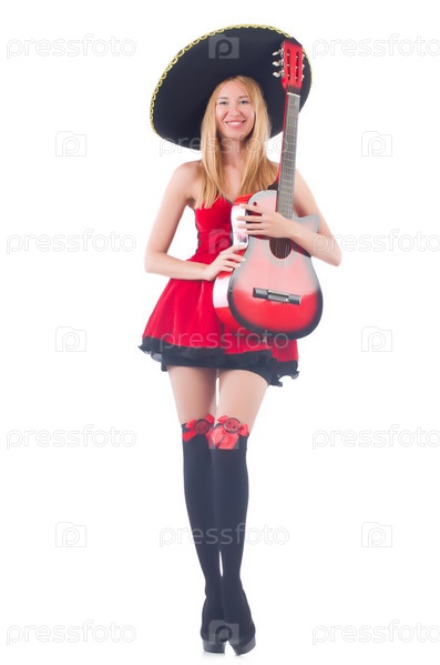Женщина в сомбреро с гитарой