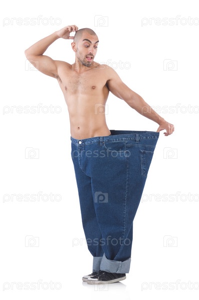 Человек с большими джинсами в концепции диеты