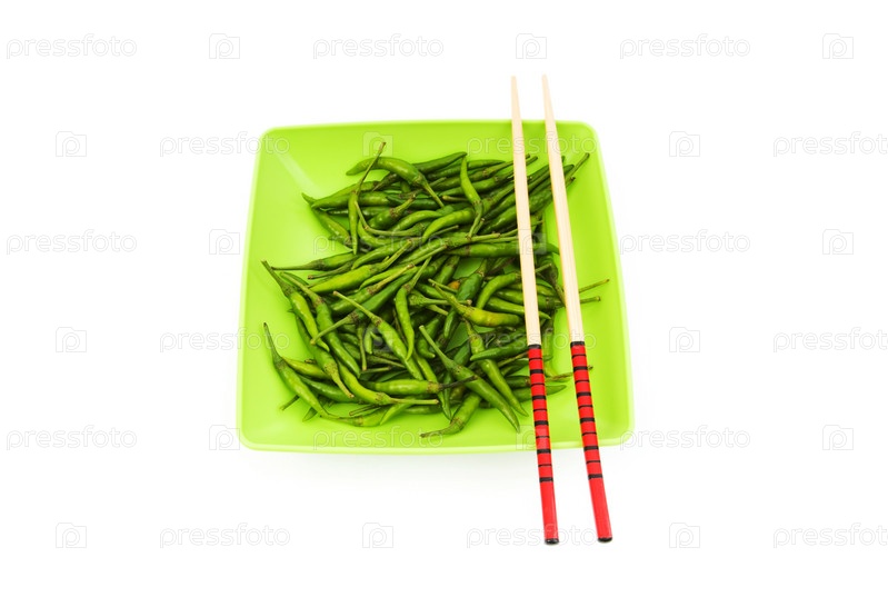 Зеленый перец в тарелке и палочки для еды