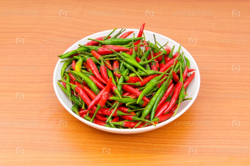 Красный и зеленый перец в тарелке