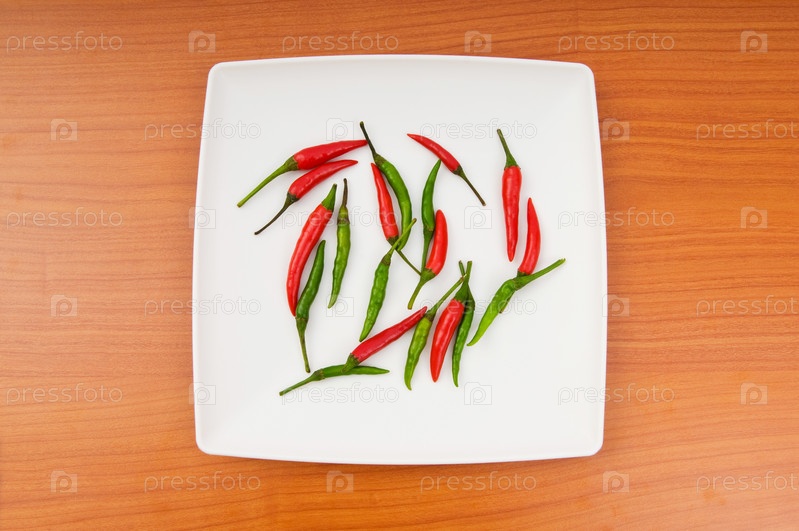 Красный и зеленый перец в тарелке