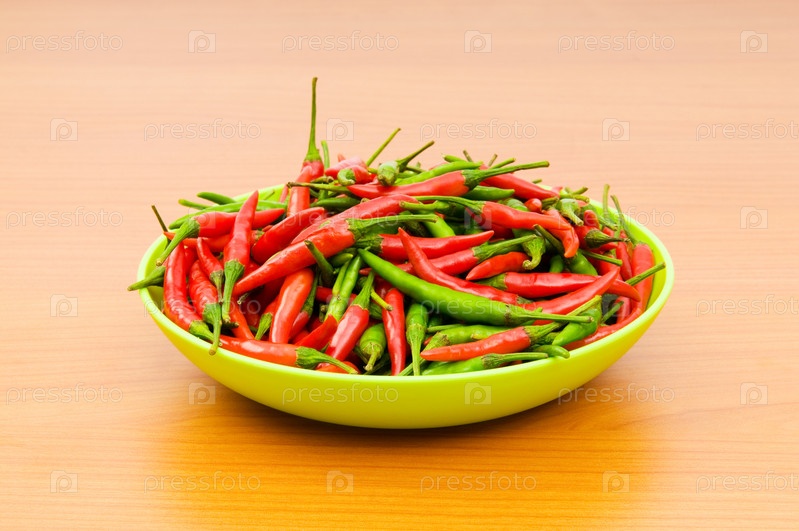 Красный и зеленый перец в тарелке