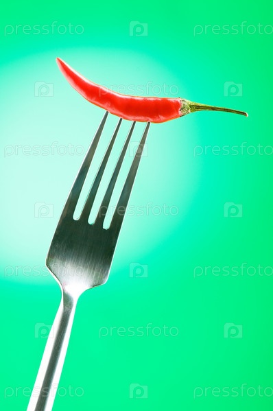 Красный перец, наколотый на вилку