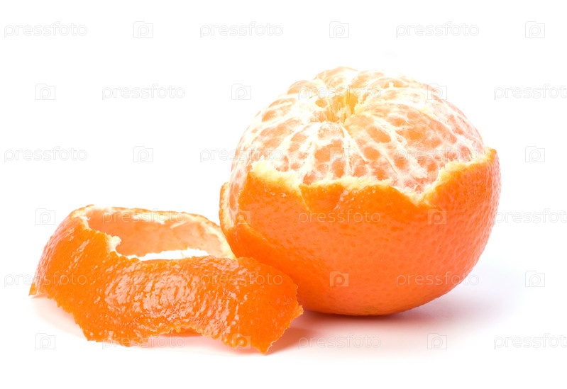 Очищенный мандарин на белом