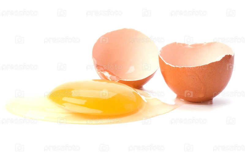 Разбитое яйцо на белом фоне