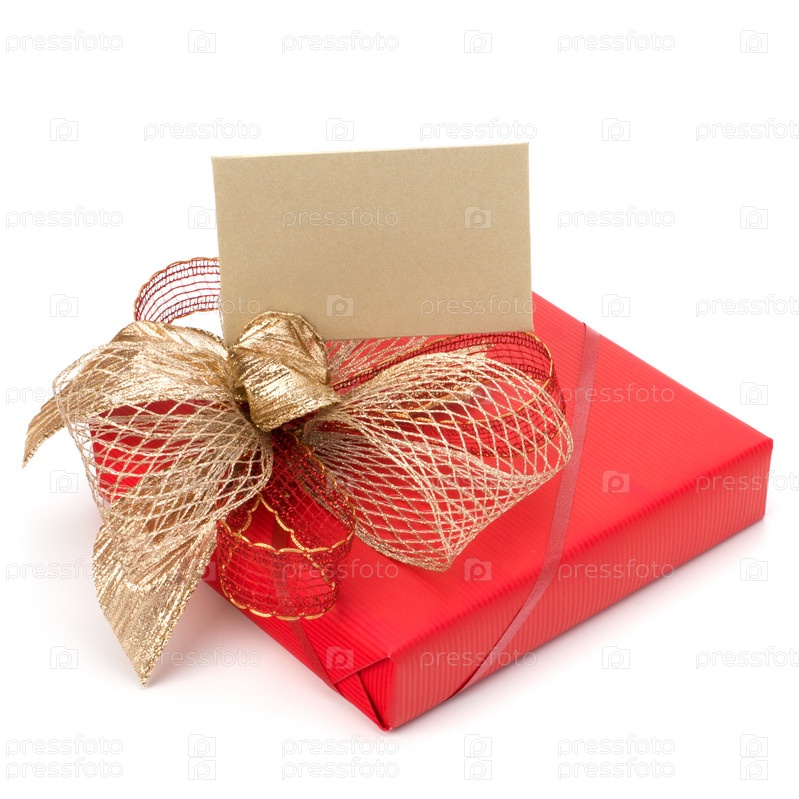 Роскошный подарок с открыткой, изолированные на белом фоне
