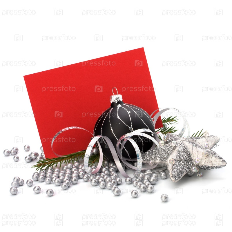 Рождественские украшения с поздравительной открыткой, изолированные на белом фоне