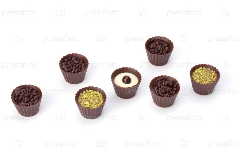 Шоколадные конфеты на белом фоне