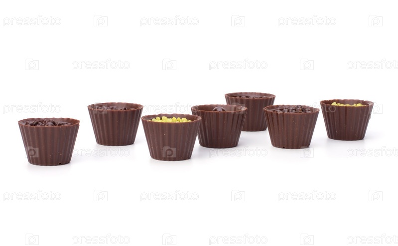 Шоколадные конфеты на белом фоне