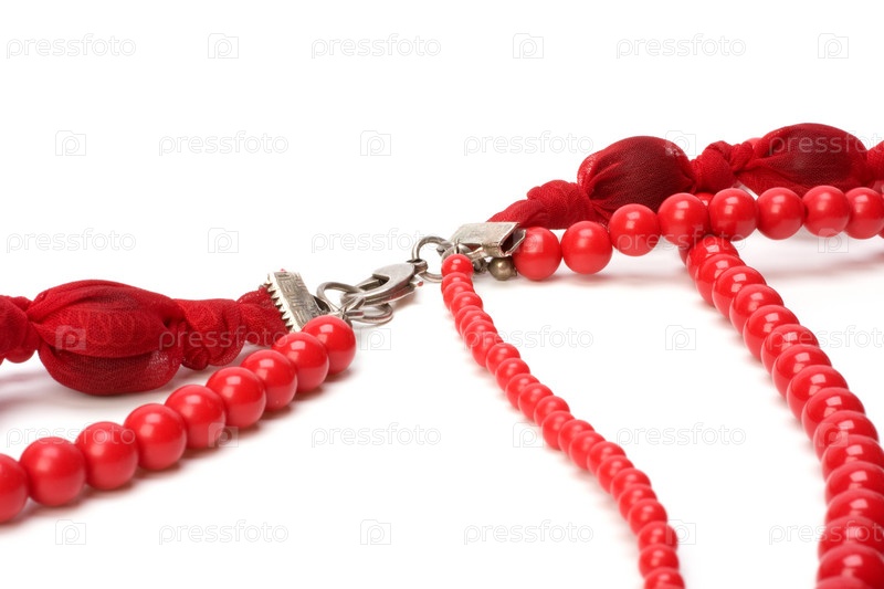 Красные бусы на белом фоне