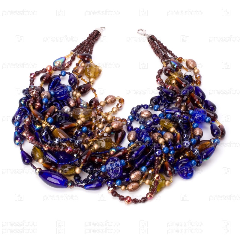 Синие бусы, изолированные на белом фоне