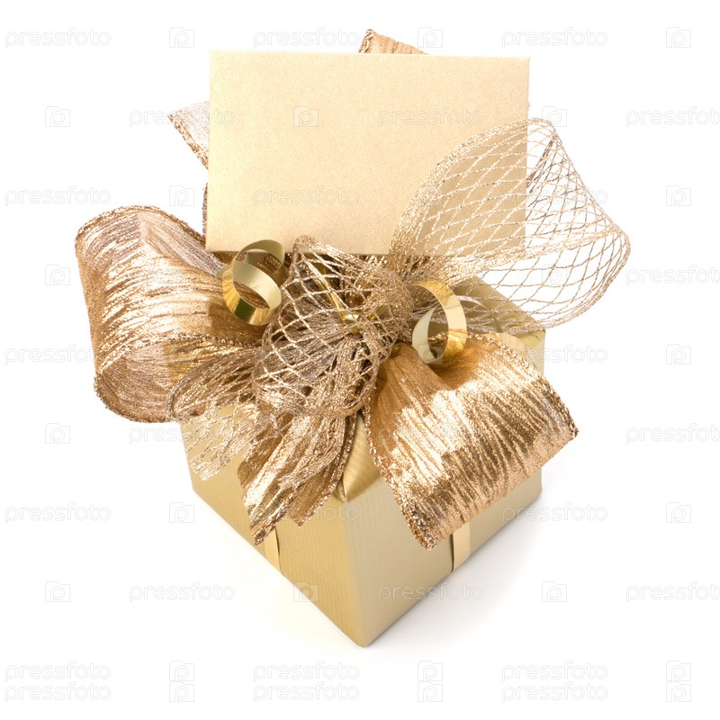 Роскошный подарои с запиской, изолированный на белом фоне