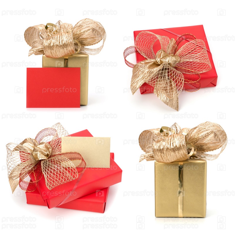 Роскошные подарки с записками, изолированные на белом фоне