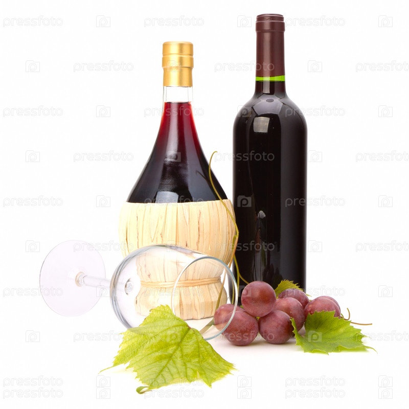 Бокал и две бутылки вина