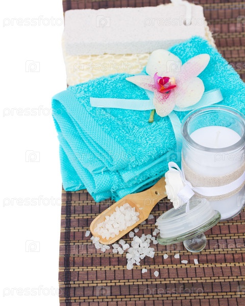 Аксессуары для спа и синее полотенце