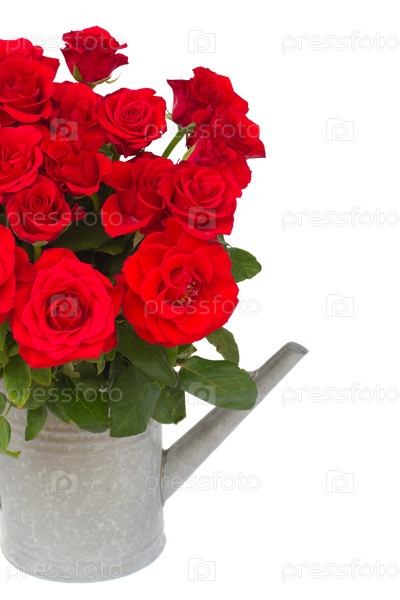 Букет свежих красных роз в лейке