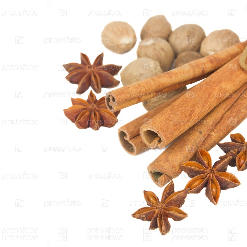 Корица, анис и мускатный орех крупным планом