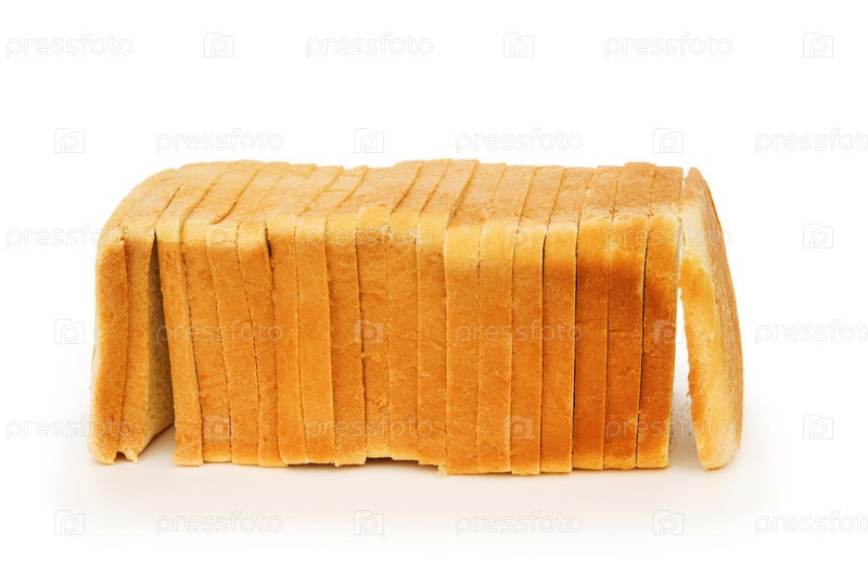Нарезанные ломтики белого хлеба на белом фоне
