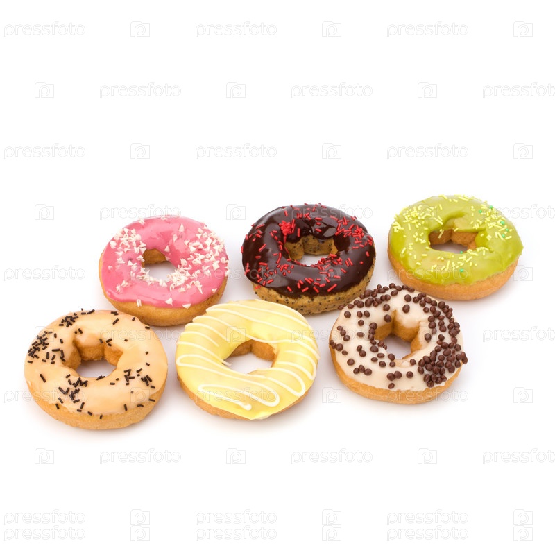 Вкусные пончики, изолированные на белом фоне