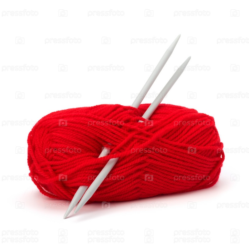 Шерстяные нитки и спицы. Принадлежности для рукоделия, изолированные на белом фоне