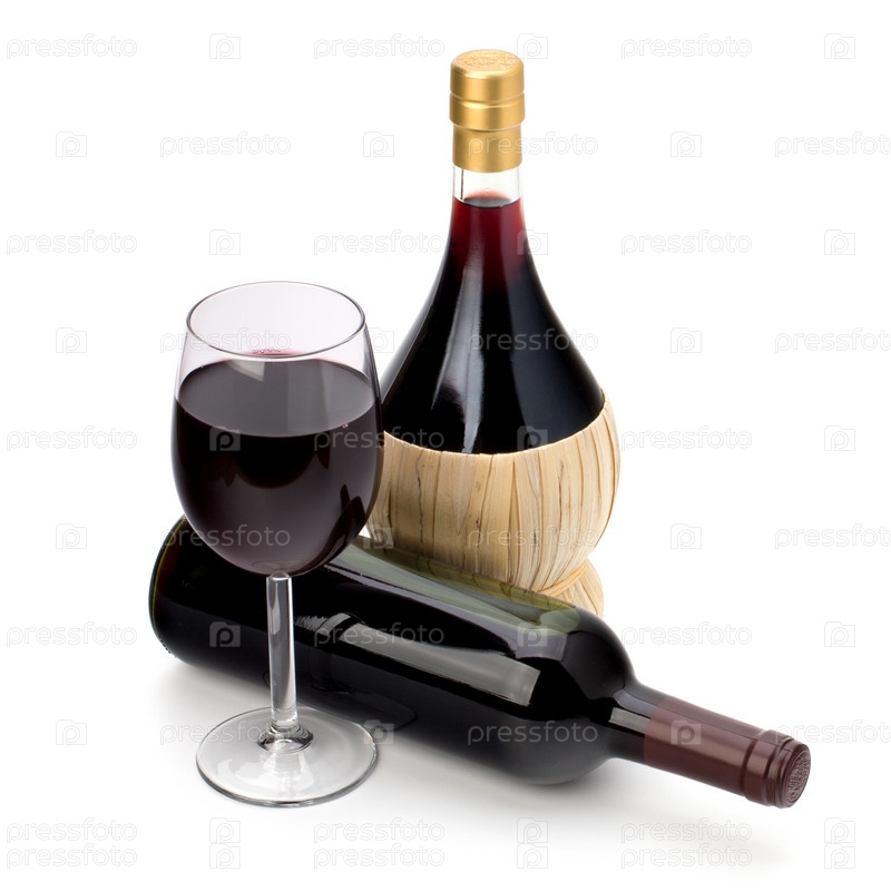 Бокал и бутылки красного вина