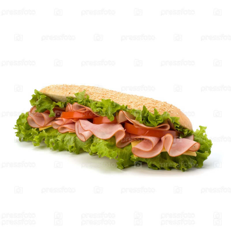Сэндвич с листьями салата, помидором, ветчиной и сыром