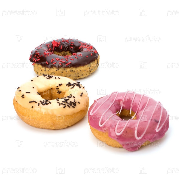 Вкусные пончики на белом фоне