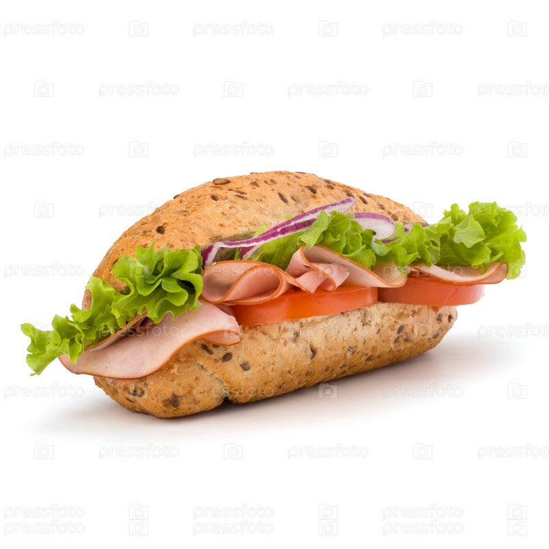 Сэндвич с листьями салата, помидором, ветчиной и сыром