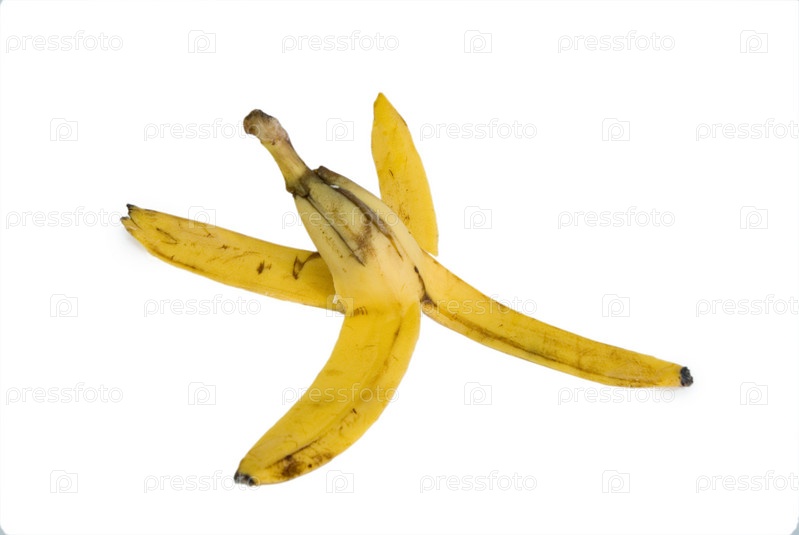 Банановая кожура на белом фоне