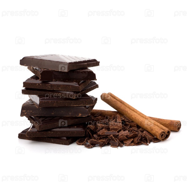 Стопка шоколада и палочки корицы