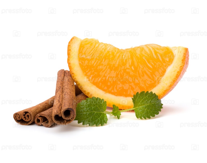 Долька апельсина, корица и мята. Ингредиенты для горячих напитков