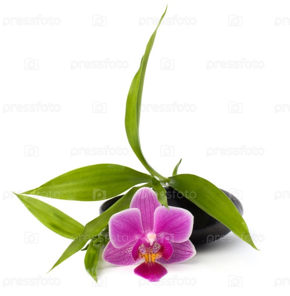 Концепция спа и здравоохранения. Орхидеи и камни