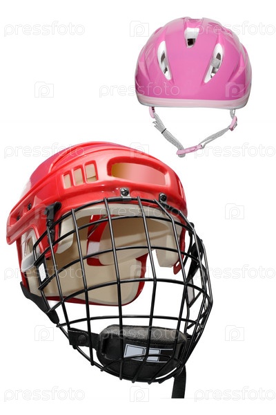 Велосипедный и хоккейный защитные шлемы