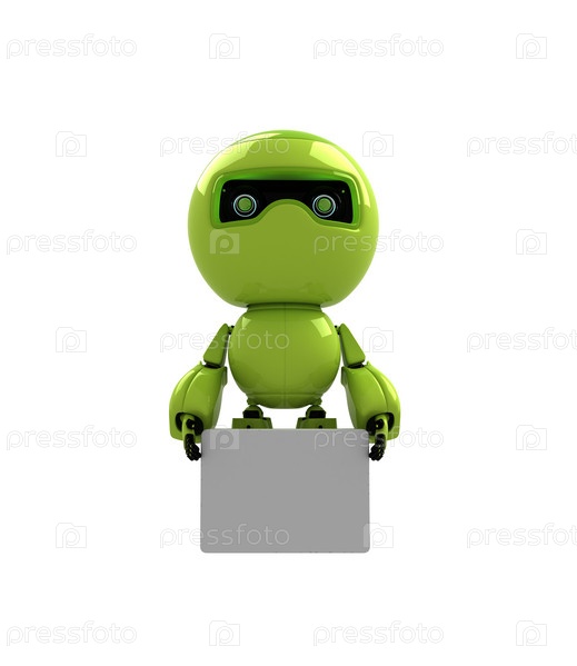 Фигурка робота с табличкой под текст