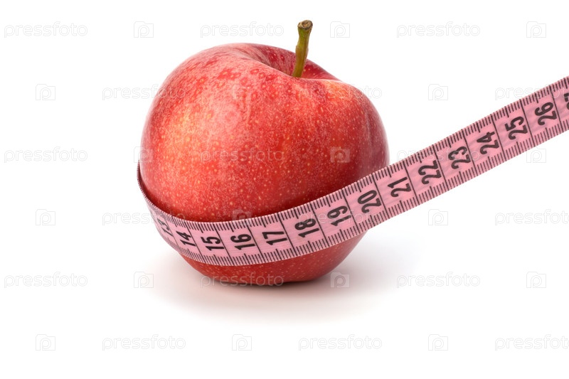Яблоко с сантиметровой лентой. Концепция здорового образа жизни