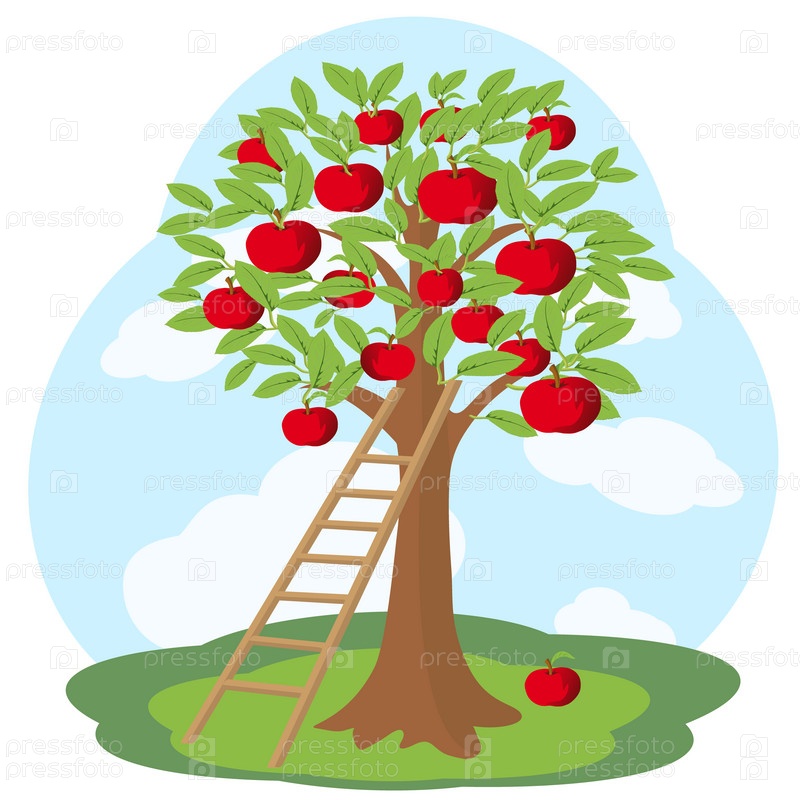 Яблоня и деревянная лестница