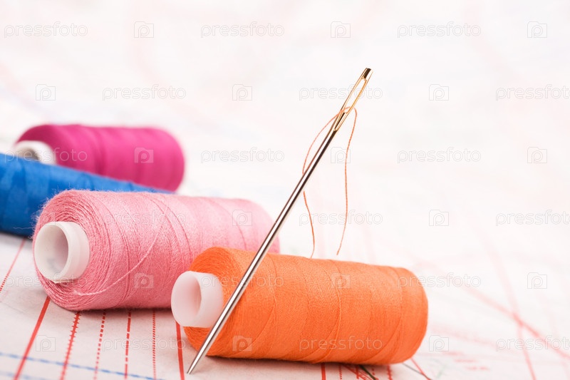 Катушки ниток и игла