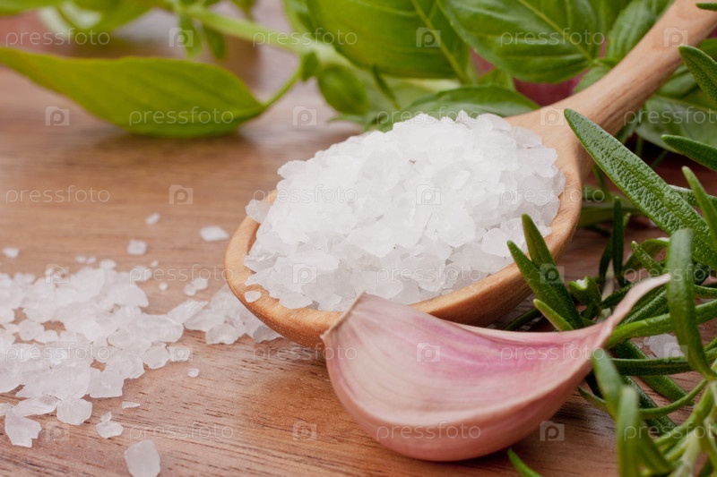Свежие травы и соль в ложке