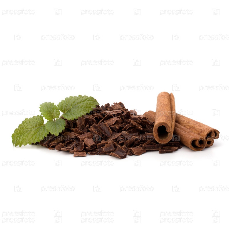 Измельченный шоколад и палочки корицы